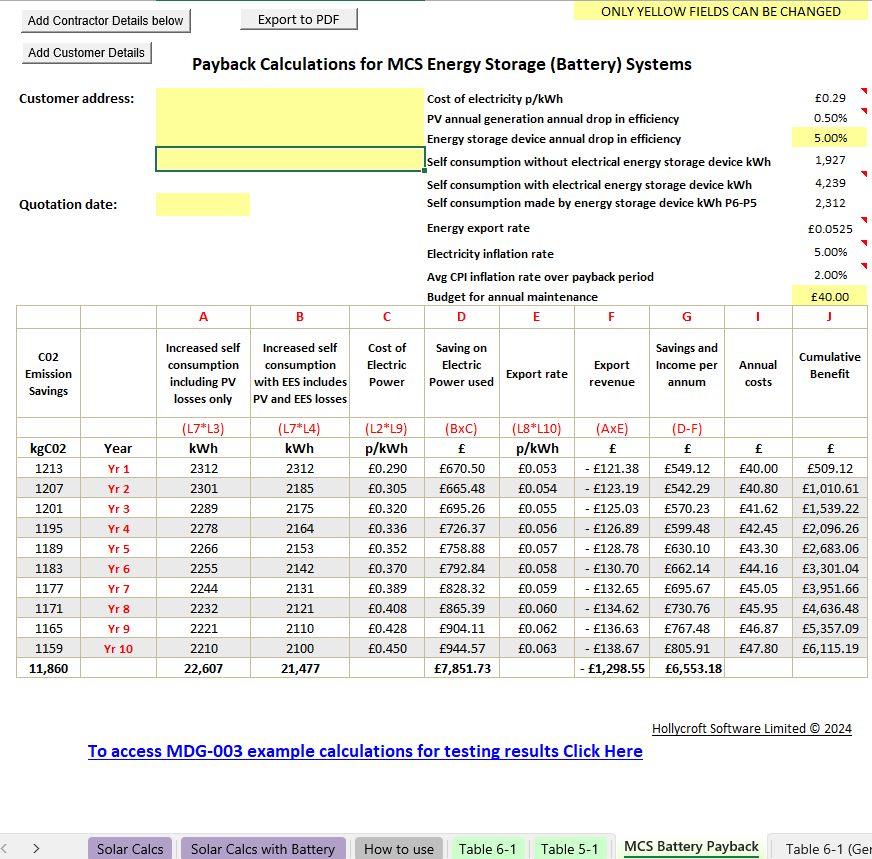 MCS Battery Payback