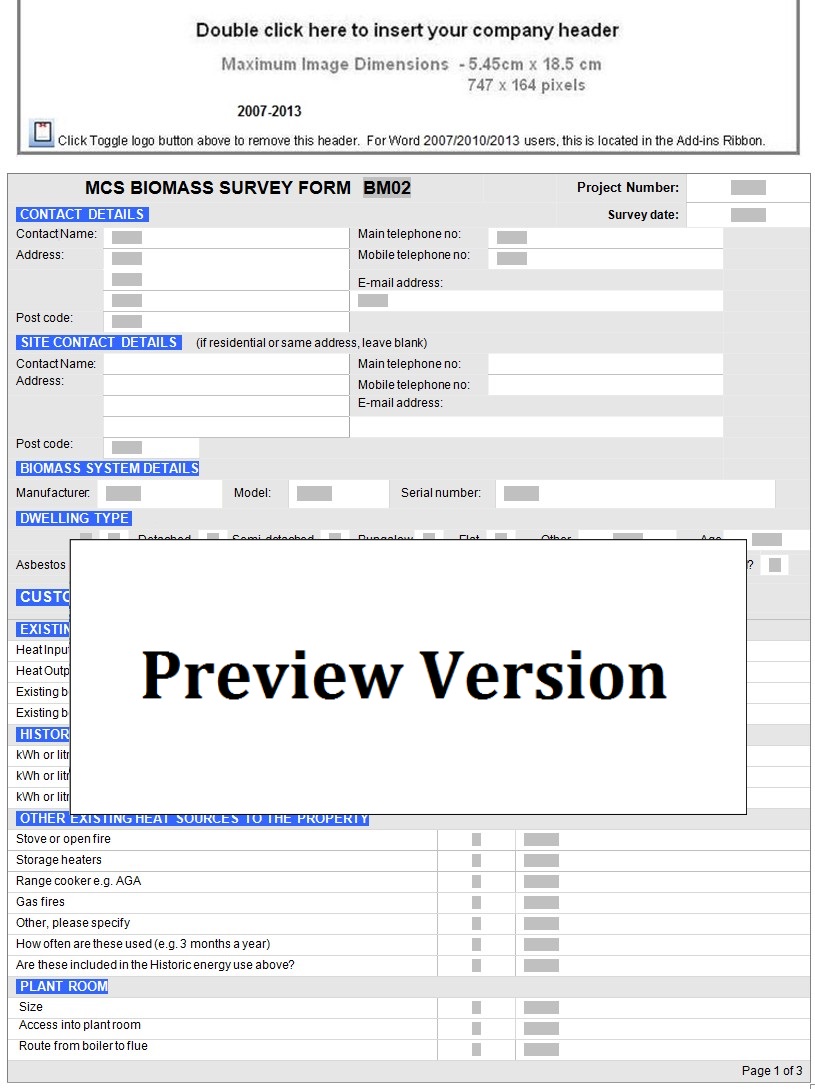 Photovoltaic Survey Form Screenshot - Page 1