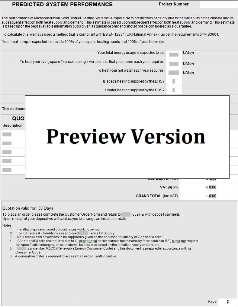 Customer Order Quotation S