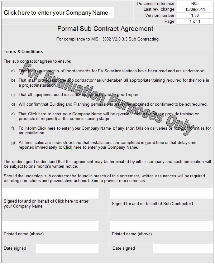Formal Sub Contract Agreement