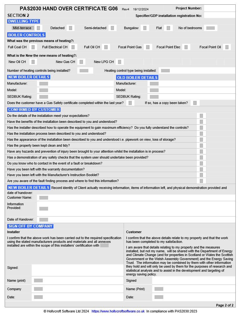 << Click for page 1 Commissioning Form Screenshot Page 2