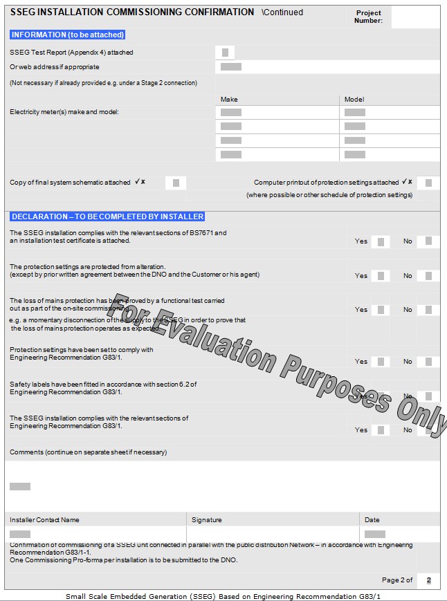 SSEG Installation Commissioning Confirmation Form Screenshot Page 2