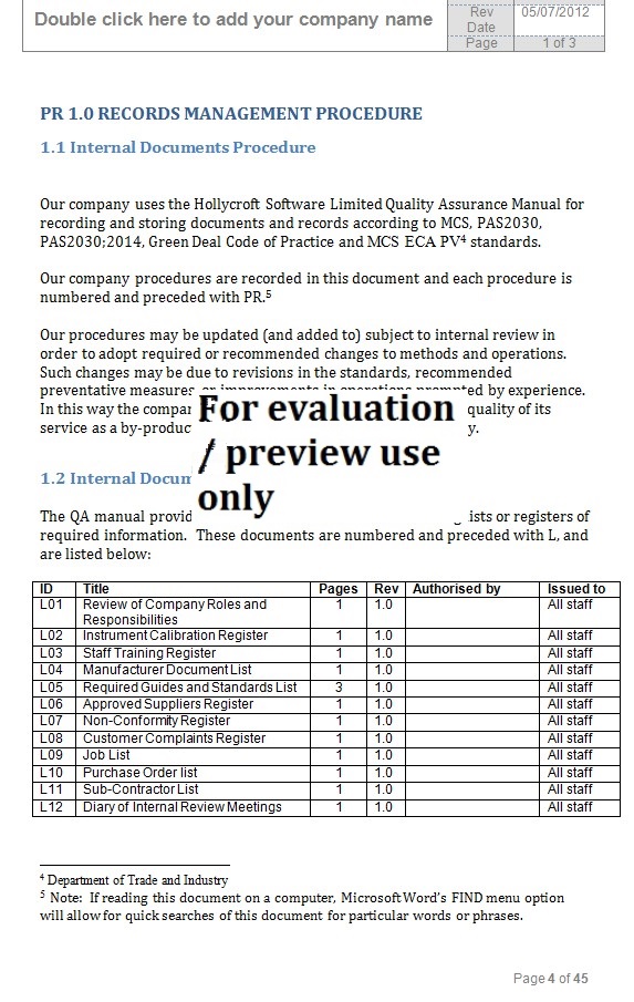 << Click for Page 3 Quality Assurance Manual Click for Page 5 >>
