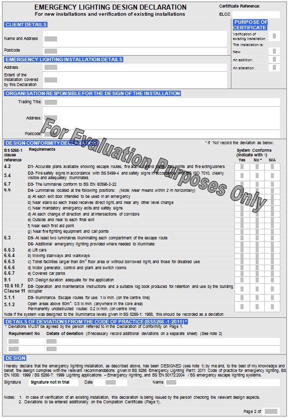 Emergency Lighting Completion Certificate - Page