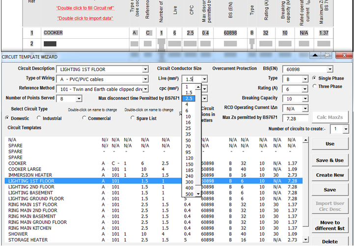 Filling in circuit details can be a tedious job. So to save time, our software allows you to store commonly used circuit values to quickly select from, modify and transfer to the form.